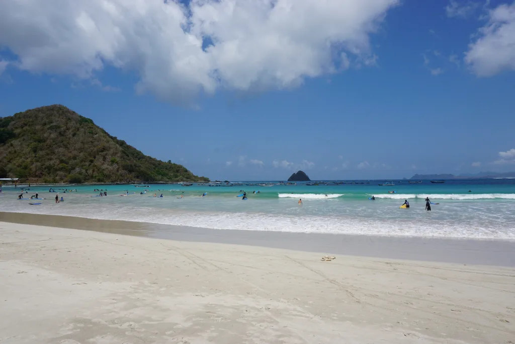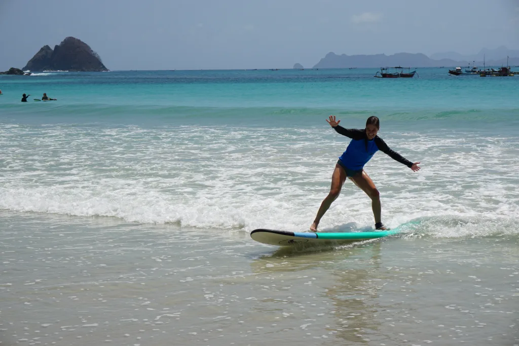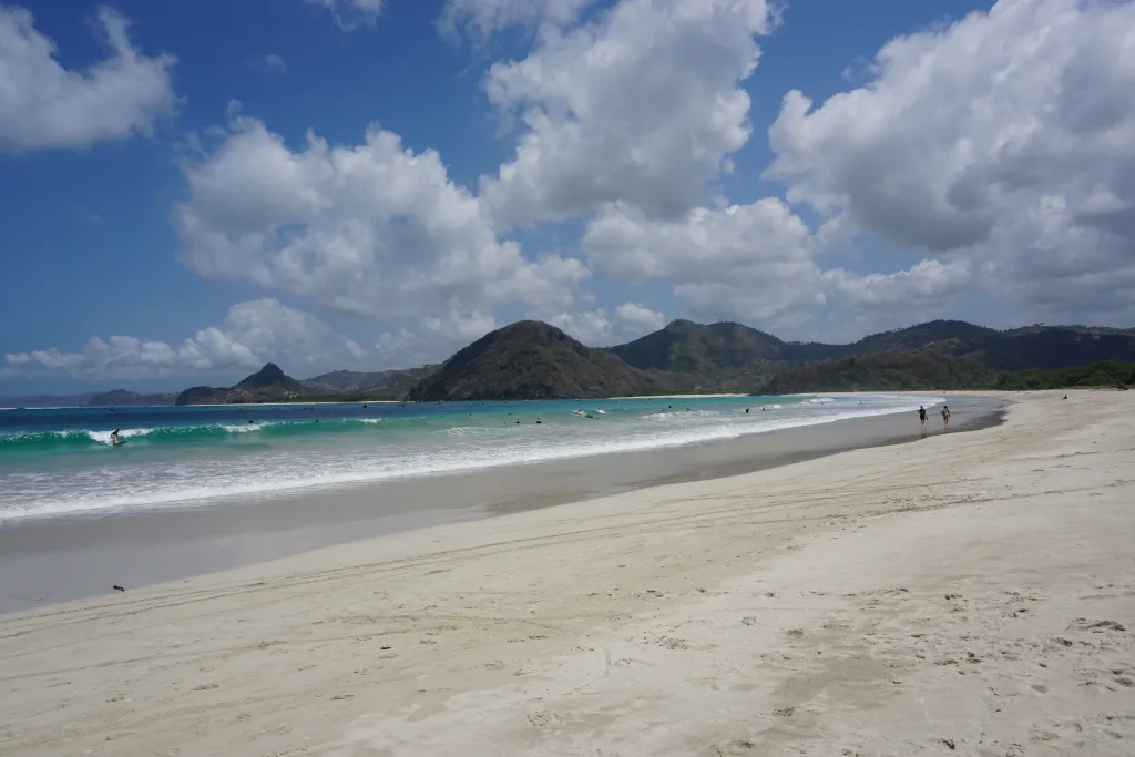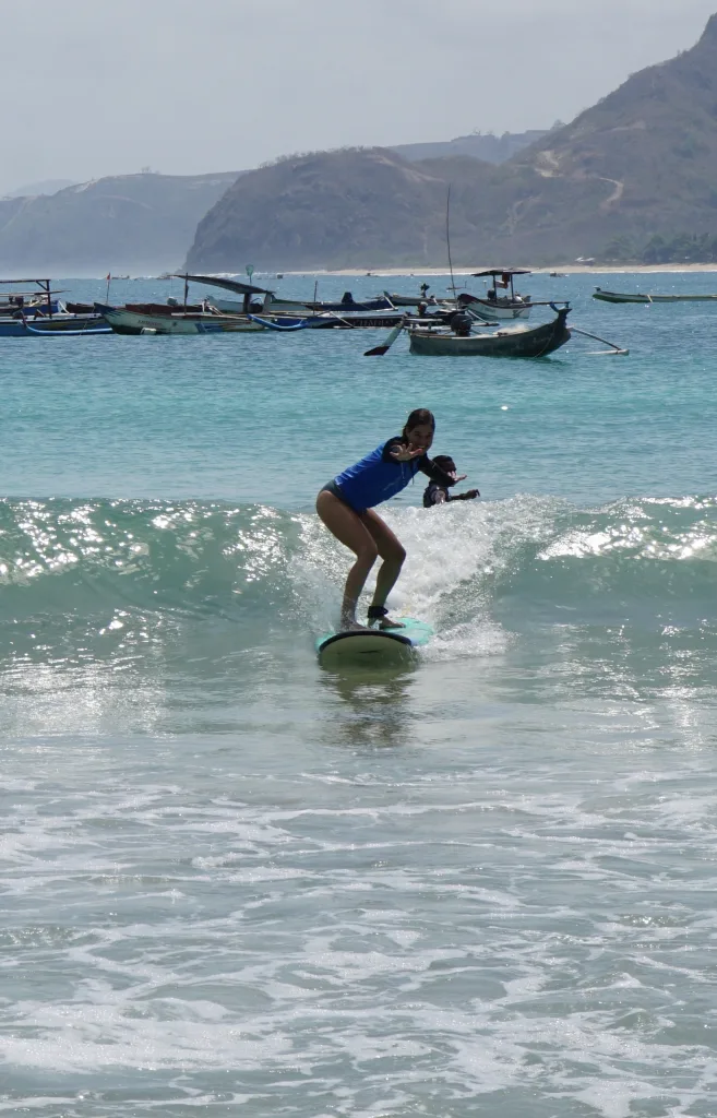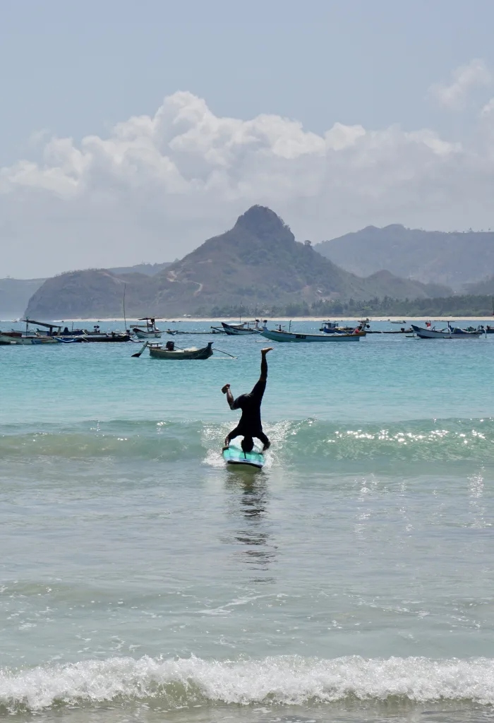 Der beste Strand zum Surfen lernen ist der „Selong Belanak“. Ich hab leider keinen anderen Strand gesehen. Der war einfach richtig für uns. Also nen Surf-Lehrer angeheuert und nach einer kurzen Einweisung ging es ins Meer. Sandy war sein Name und das hat richtig gefetzt. Als ich das erste Mal ne Welle bekommen habe wurde ich angefixt. Und es ging immer besser. Die Ernüchterung trat dann am nächsten Tag ein. Ohne Lehrer der einem zuruft „paddel,paddel,paddel“ und „up,up,up“ ging fast garnichts mehr. Am Strand unterm Schirm liegen und den Surfern, bei einem „Banana-Oreo-Juice“ zuzuschauen, ist aber auch, als würde ich in nem Film mitspielen.