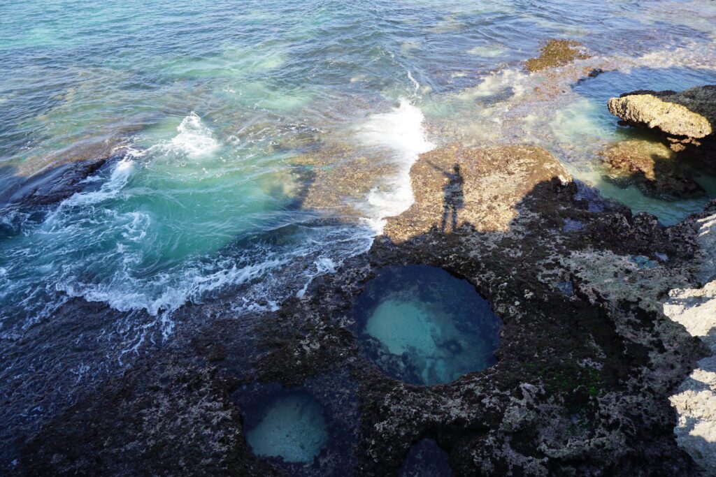 Besonders diese riesigen Wellen, die wie eine Maschine ständig vor dem Strand brechen, sind sehr beeindruckend. Dies ist natürlich der Spielplatz der Surfer. Wir versuchten einmal mit Nia, unserer Vermieterin, bei diesen Wellen zu surfen. Schon das ins Wasser gelangen war eigentlich aufregend genug. Sie leitete uns zu einem Spot im Wasser. Die Welle kam. „Up, Up, Up“ und schon ging der Ritt auf der Welle los. Leider musste ich vom Board springen, da ich dem Riff immer näher kam. Scharfkanntiges Gestein, bei Ebbe gut zu sehen, verbirgt sich unter der Wasseroberfläche und kann dir den Rücken aufschlitzen.