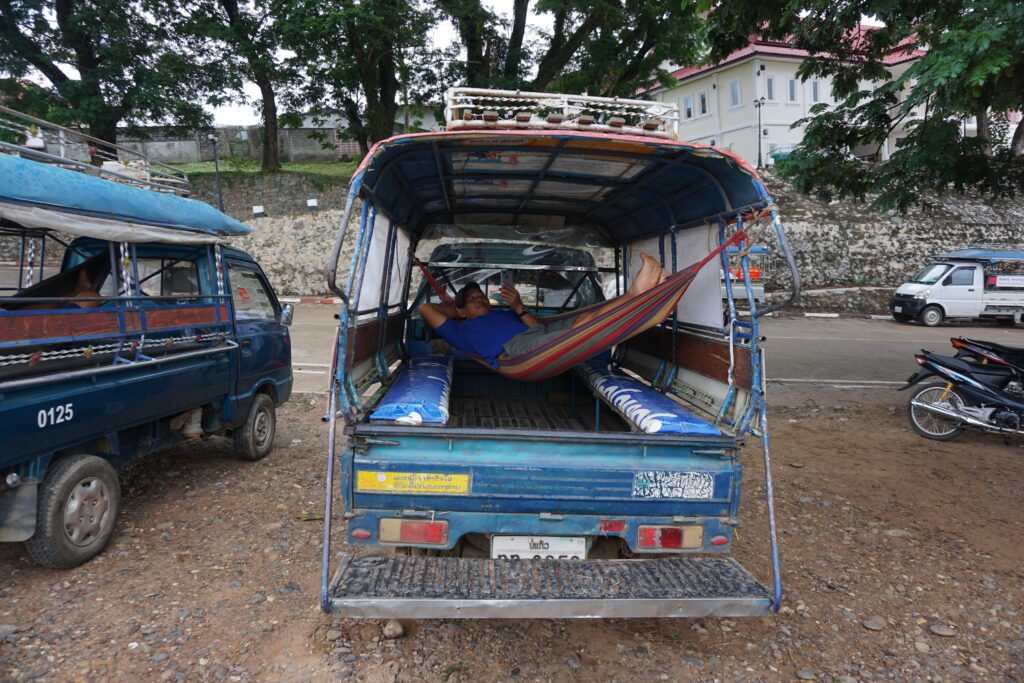 Nach der Ausreise mit dem Bus durchs Niemannsland zur laotische Grenze.