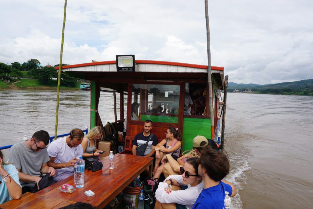 Die fahrt führt über den Mekong 6h bis zu einer Zwischenstation mit Übernachtung. Ein Ort Namens Pak Beng . Wir buchten schon vorher eine Unterkunft. Es ist aber glaube ich ratsamer sich vor Ort eine zu suchen. Das kann die hälfte billiger werden. Am nächsten Tag um 9 Uhr geht es mit dem Boot weiter. Und auch hier zählt, früher da sein guter Sitzplatz. Ein anderes Boot anderer Bauart. Indem es sich absolut nicht empfielt hinten zu sitzen. Der Motor ist so laut und die Fahrt dauert noch länger als die Erste.