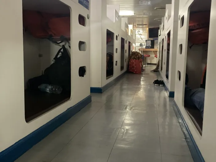 Auch wenn das erstmal stressig klingt. Ich kann es jedem nur empfehlen in der Touristen Klasse mit zu reisen. Diese sind klimatisiert und wer genug Tücher mit hat, kann sich eine schöne Höhle bauen. 20 Uhr geht es los und zwischen 7 Uhr und 8 Uhr, je nach Strömung, wird der Hafen von Siargao angefahren. Dort wiederholt sich das Spiel und mit einer kleineren Fähre ging es für 2h weiter nach Surigao.