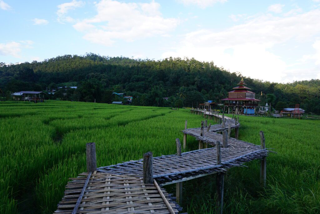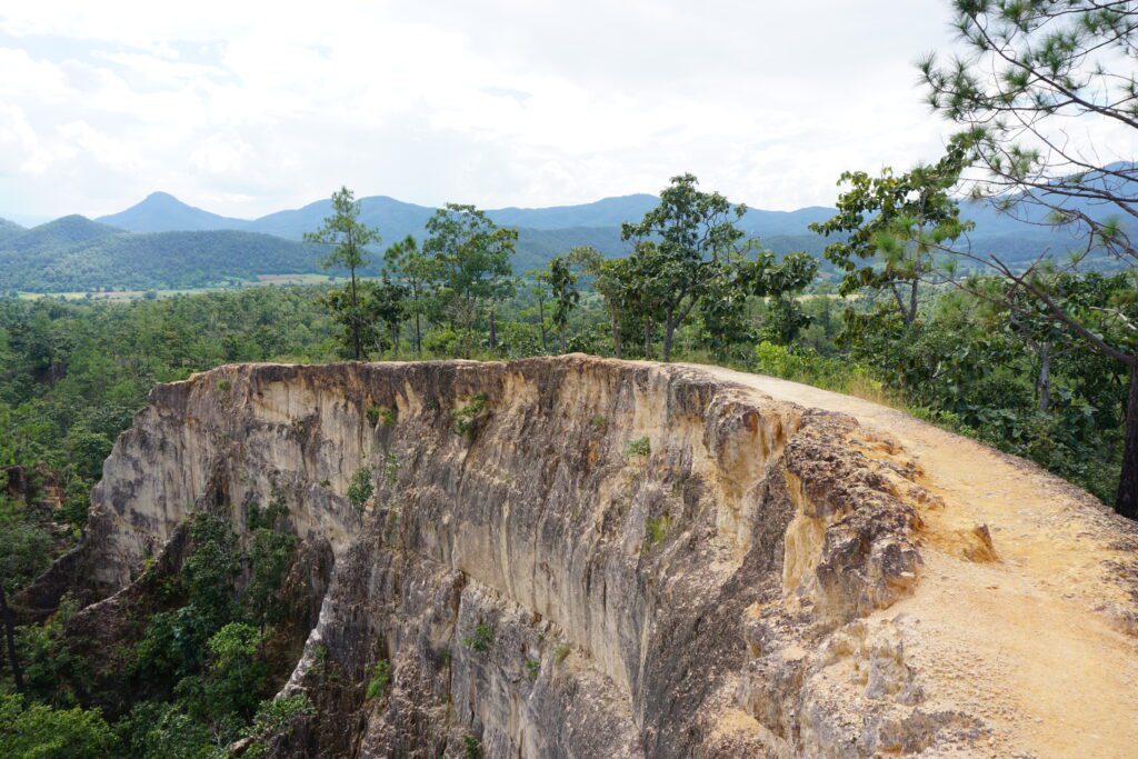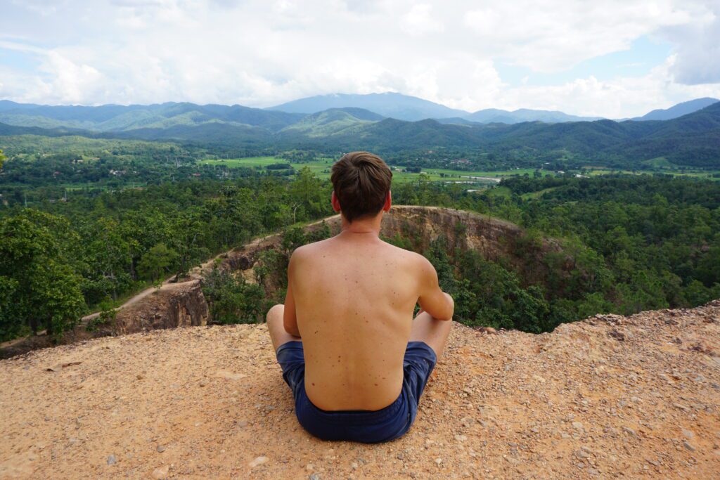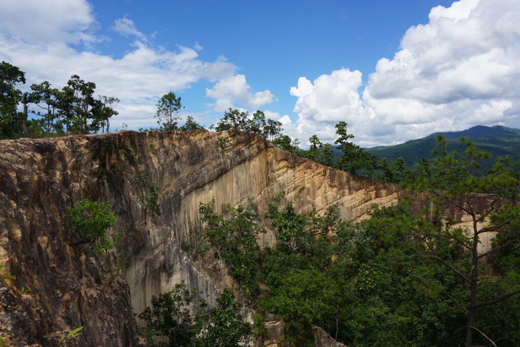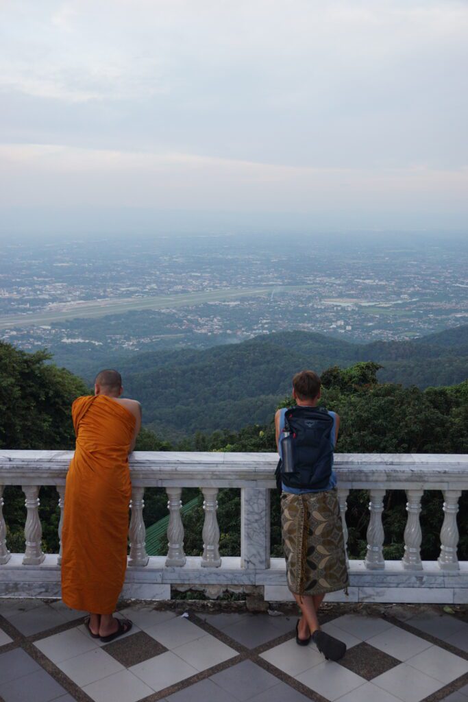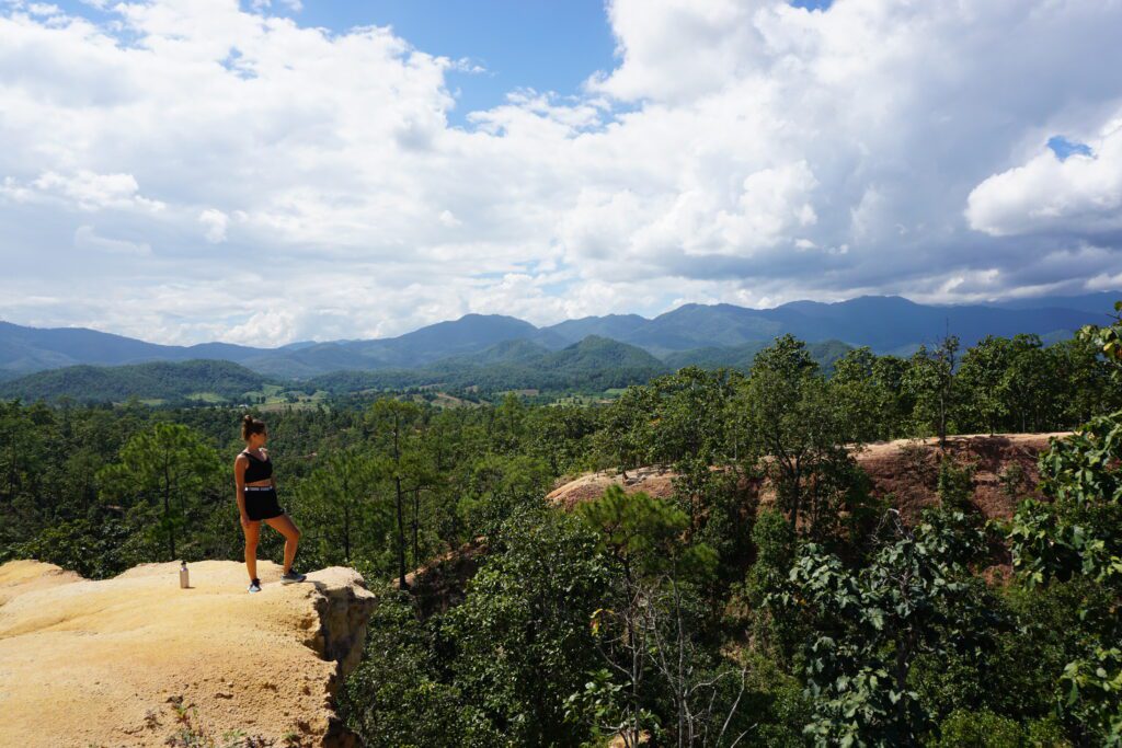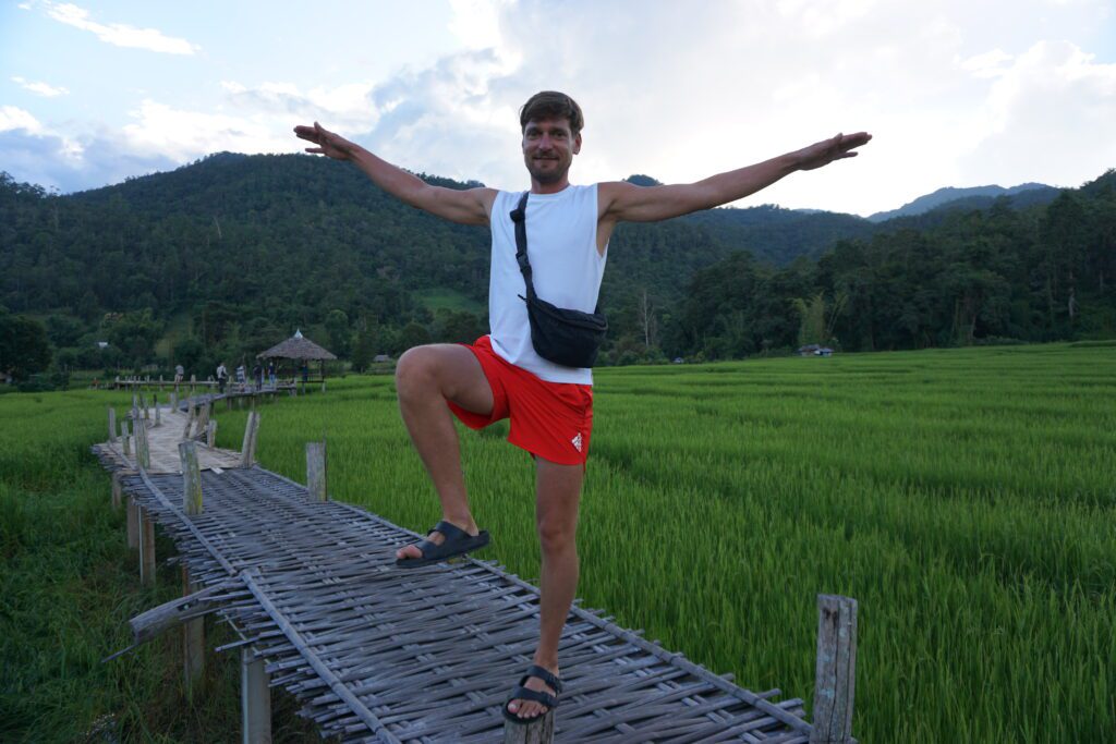 Nach drei Stunden in einem Mini Van kamen wir in Pai an. Die Strecke ist mehr als kurvig. Es ist glaube ich nicht ungewöhnlich eine parkendes Fahrzeug mit einer kotzenden Person davor zu sehen. Pai ist ein bekanntes „Hippi“ Dorf. Wahrscheinlich auch schon aus dieser Zeit. Umso touristischer, aber entspannt. Viele Bars, gutes Essen, aber wir waren kaum dort, sonder wieder mit dem Scooter unterwegs die Umgebung zu erkunden. Der weiße Buddha in den Bergen war unsere erste Station und dieser ist immer wieder von unterschiedlichen Orten aus zu sehen. Highlight ist der „Canyon“. Eine Gebirgsfläche die erklettert werden kann. Links und Rechts der Abgrund. Wir starteten auch den Versuch zum Wasserfall zu gelangen. Dem Fluss folgend, ging es mehrmals knietief durch den Fluss und wechselten die Seite. Nach einer Weile brachen wir ab, da uns sonst die Dunkelheit auf dem Rückweg begleiten würde. Bis dahin ging es aber einsam durch den Dschungel. Immer im Hinterkopf die Angst vor Schlangen;)